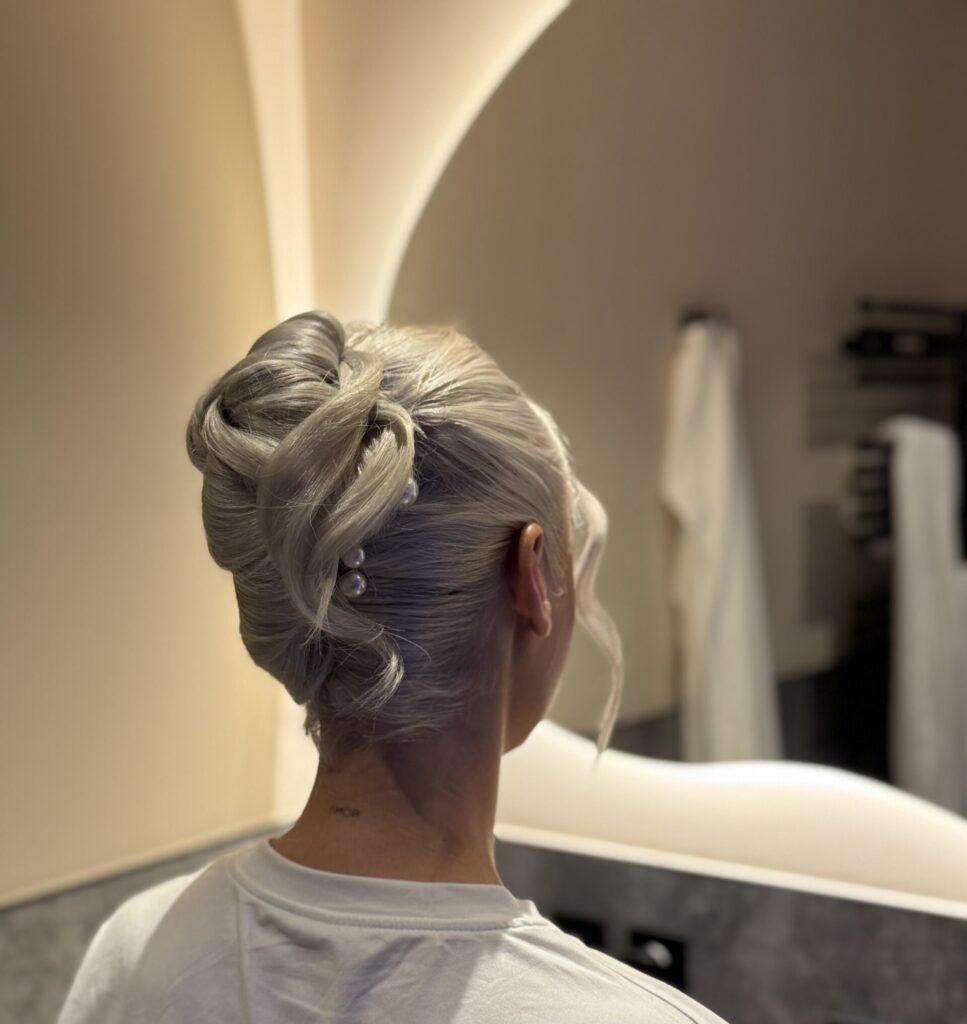 Hochzeitsfrisuren deluxe: Low Bun mit Kristall-Pins, Boho-Wellen mit Blütenkranz oder Chignon – Kenan Mujkic Premium Salon kreiert Ihr Bridal-Styling.