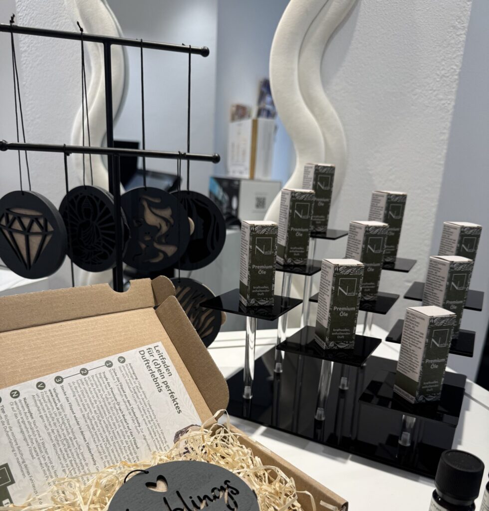 Die Timber Freshys aus Holz bringen mit ätherischen Ölen einen dezenten Duft in Auto, Bad oder Schrank und sind samt naturreinen Ölen im Salon erhältlich.